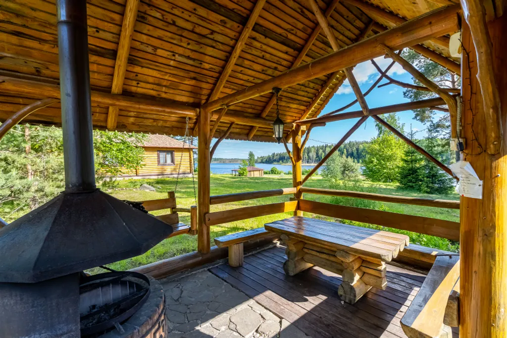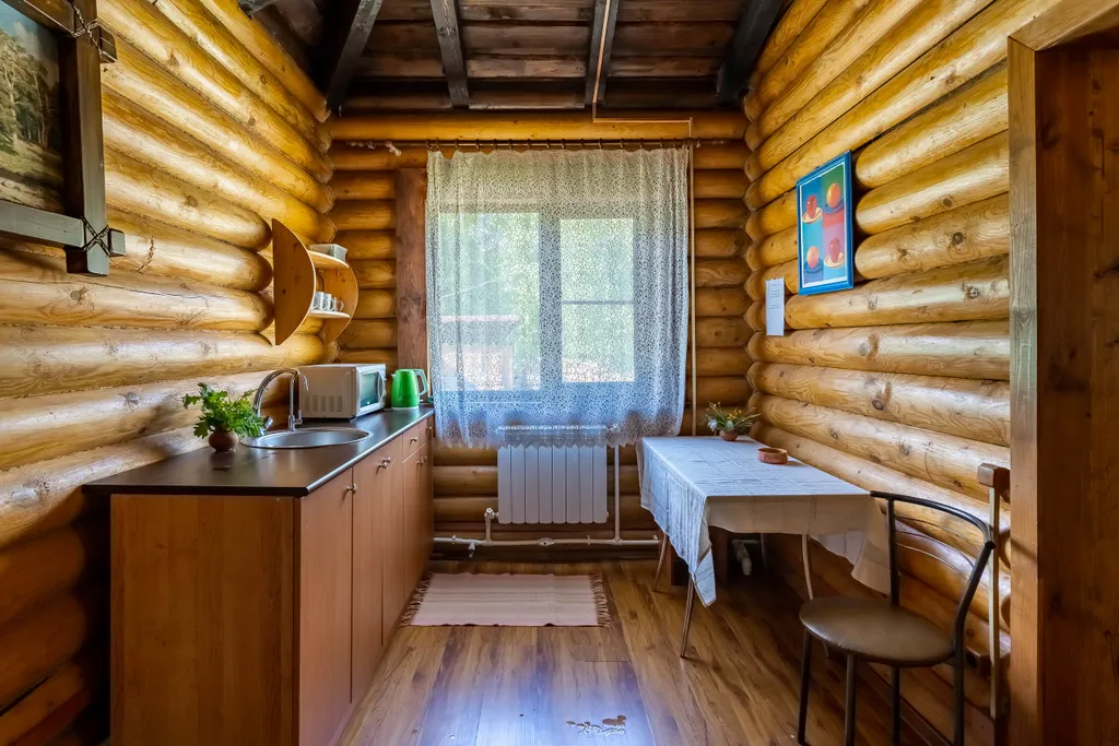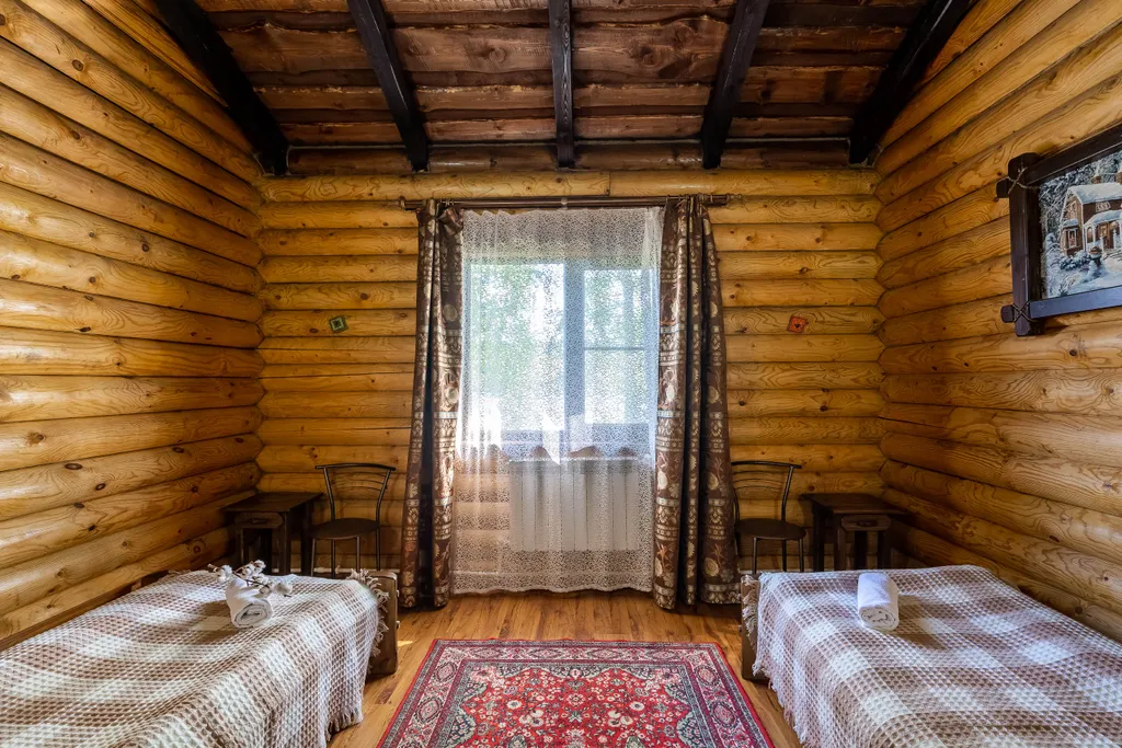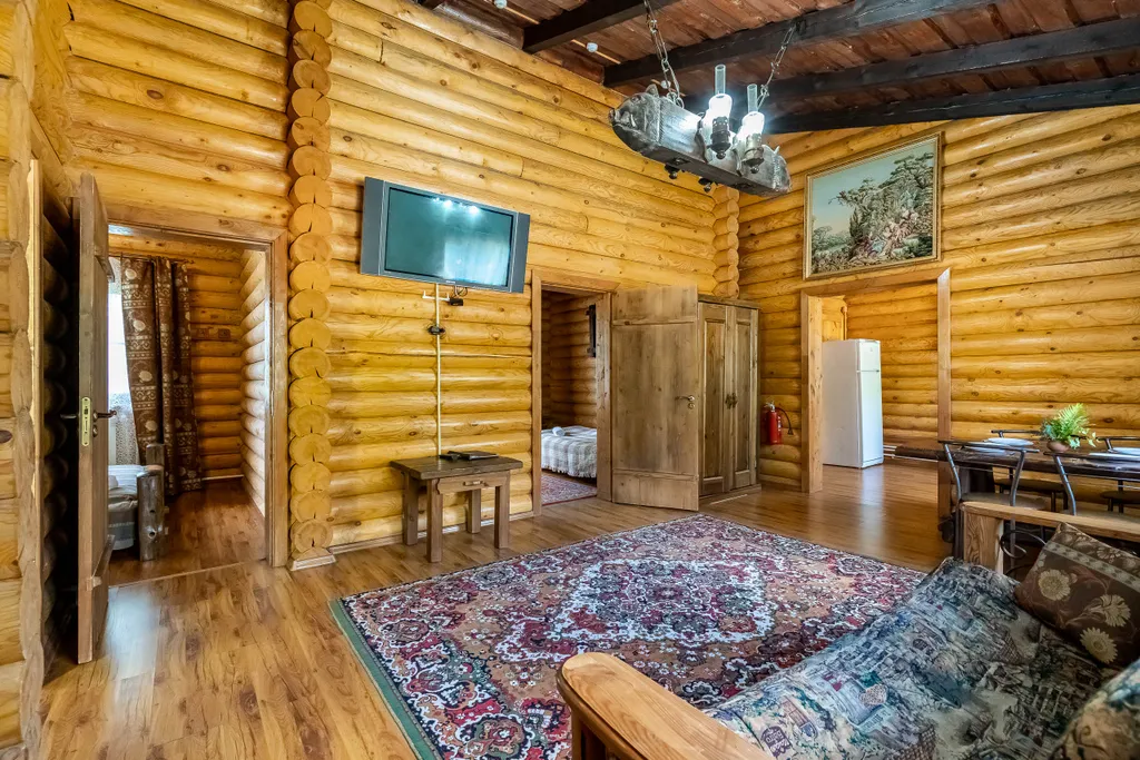 В одной спальне двуспальная кровать, в другой 2 односпальные кровати. В гостиной обеденная зона, и диван-кровать, имеется телевизор (20 каналов). Кухня оснащена холодильником, чайником, микроволновой печью, необходимой посудой. Горячая и холодная вода подается круглосуточно. У дома есть беседка, с мангалом и качелью.
