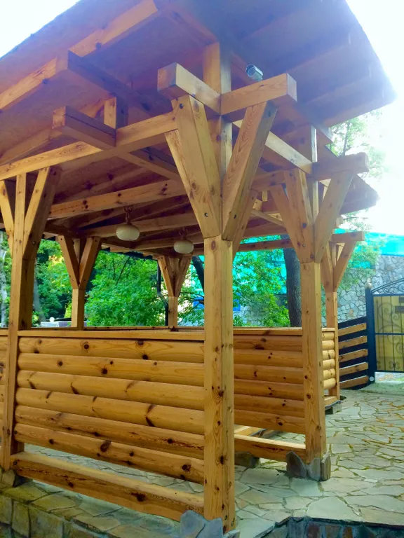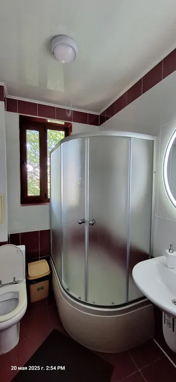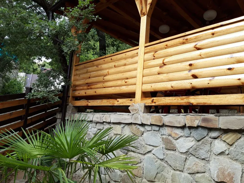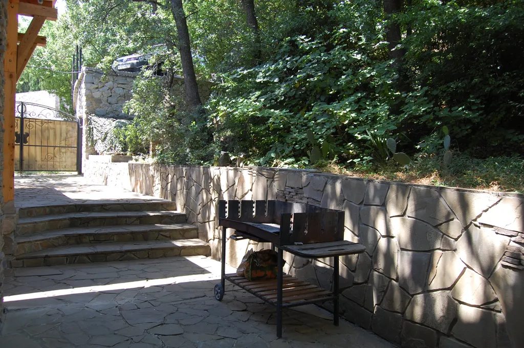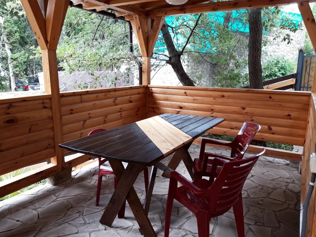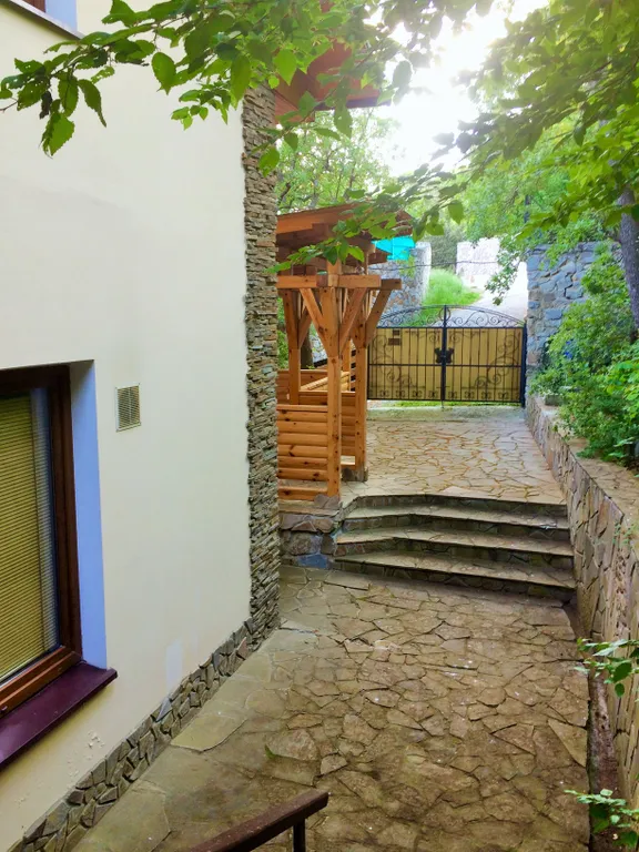 Второй этаж – две просторные комнаты-спальни, кухня-столовая с полным набором посуды, балкон на весь этаж, кондиционер, камин. В комнатах новая мебель, телевизоры, двухспальные кровати с ортопедическими матрасами, санузел, стиральная машина, своя большая беседка, мангал и двор.