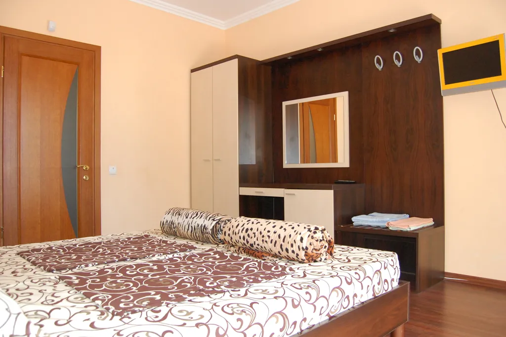 В комнатах новая мебель, телевизоры, двухспальные кровати с ортопедическими матрасами.