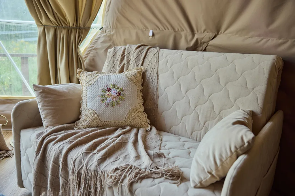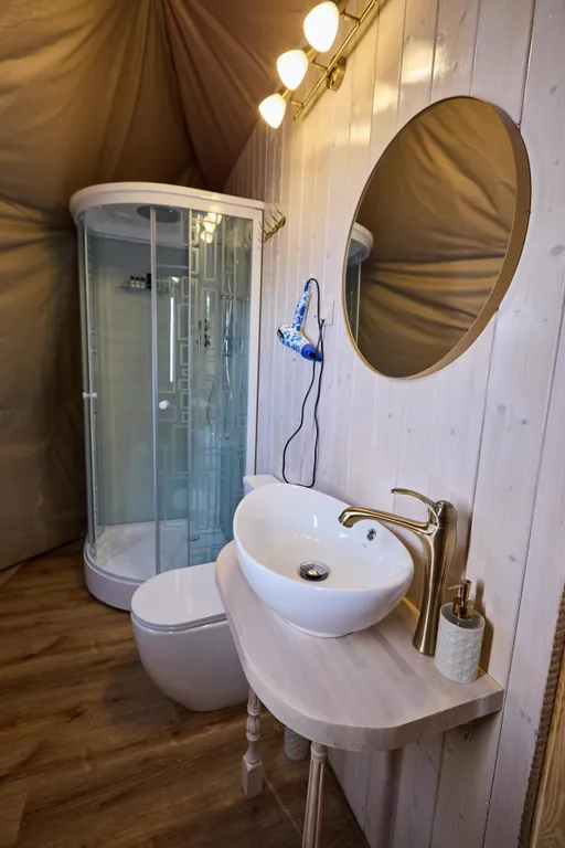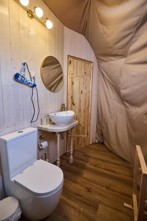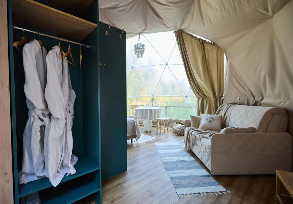 Внутри всё как в отельном номере, для комфортного отдыха на природе.