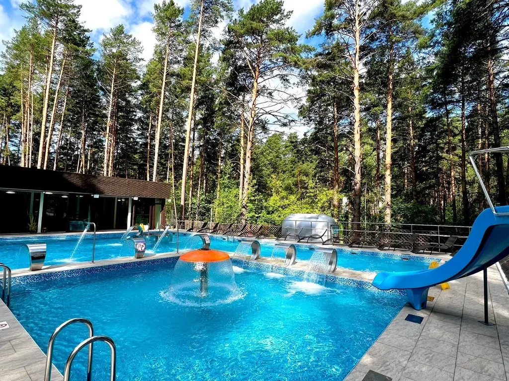 Акватермальный комплекс с горячим душем (42 градуса) 3 часа в день. До конца апреля безлимитное посещение по времени, вход раз в день. В день выезда с 21.02-23.02 и 07.03-09.03 НЕ включено.