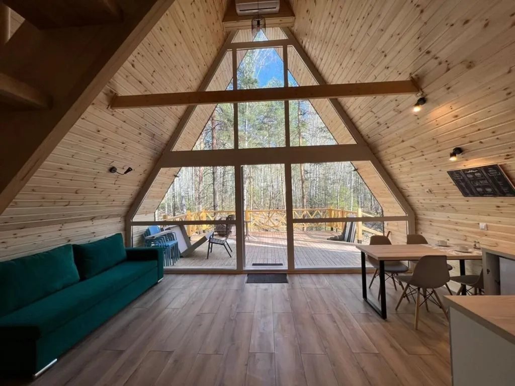 2х-этажный дом с панорамными окнами, 3 спальни и кухня-гостиная.