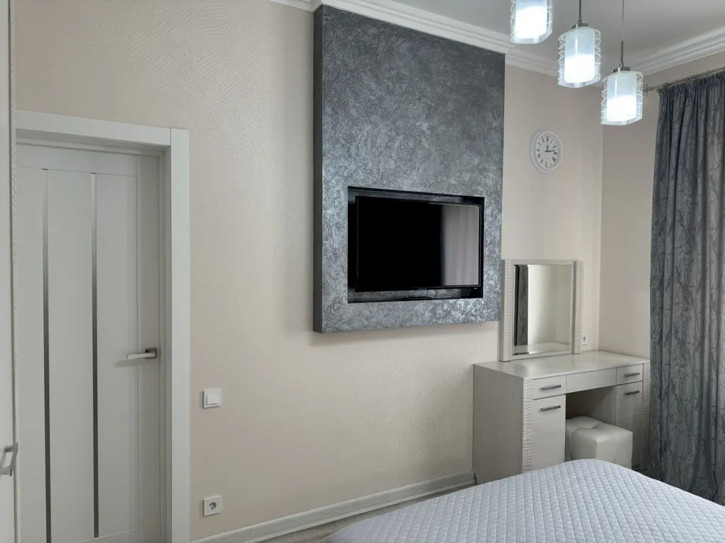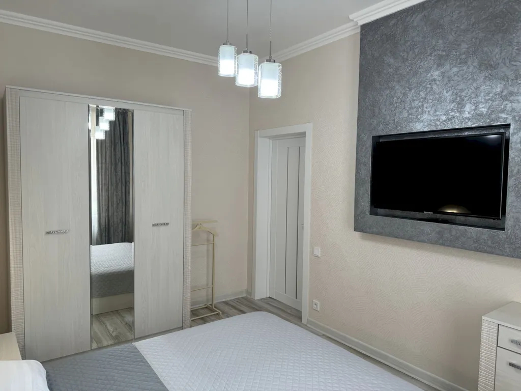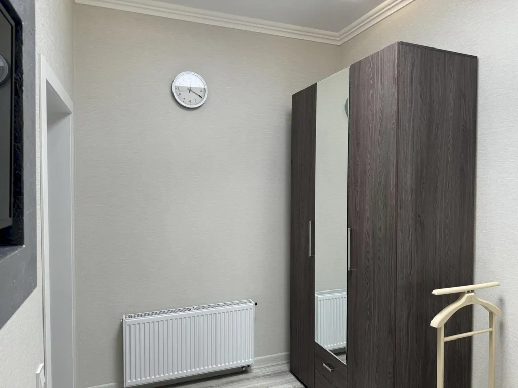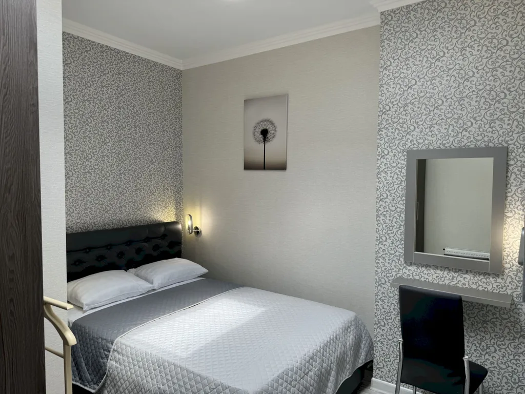 Двуспальная кровать 160 см, кондиционер, шкаф для одежды, ТВ, окна во двор.