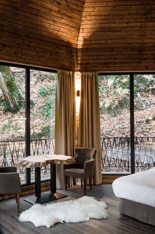 - Панорамные окна с видом на лес;