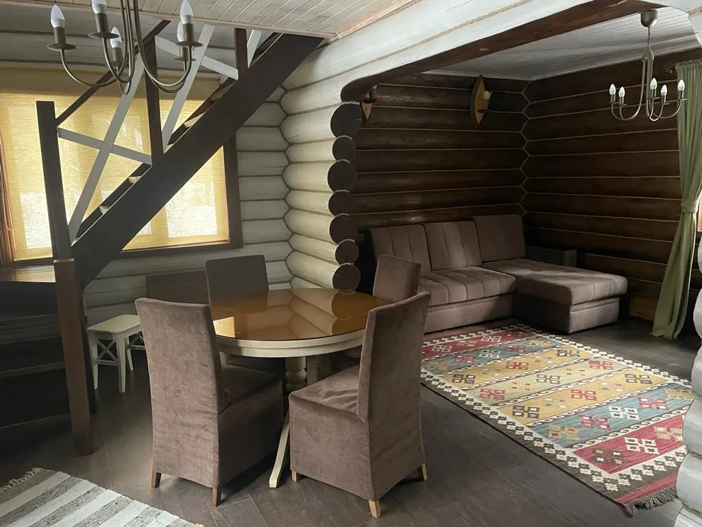 На первом этаже находится прихожая, санузел с душевой кабиной (горячая вода круглосуточно-бойлер), уютная большая гостиная с телевизором и DVD, столовая и кухня, оборудованная всем необходимым - холодильник, плита, чайник, полный набор посуды.