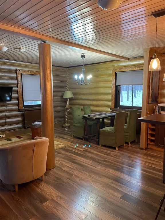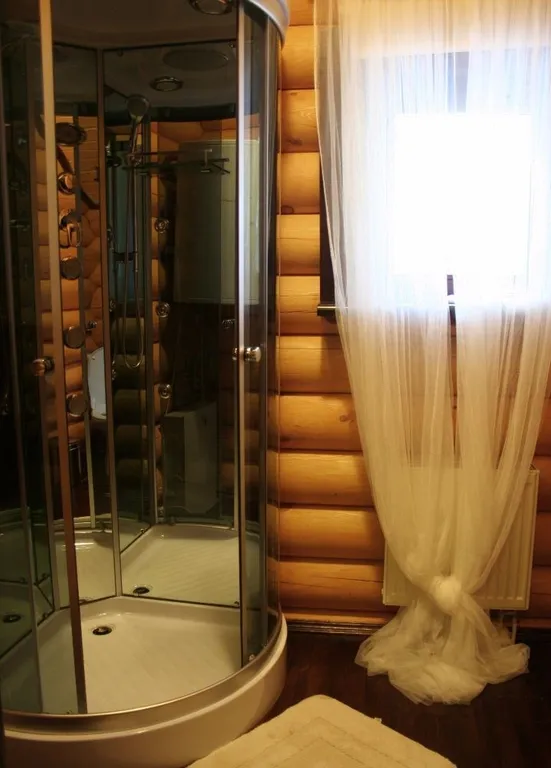 В доме на первом этаже находится прихожая, санузел с душевой кабиной (горячая вода круглосуточно-бойлер), уютная большая гостиная с телевизором и DVD, столовая и кухня, оборудованная всем необходимым - холодильник, плита, чайник, полный набор посуды.