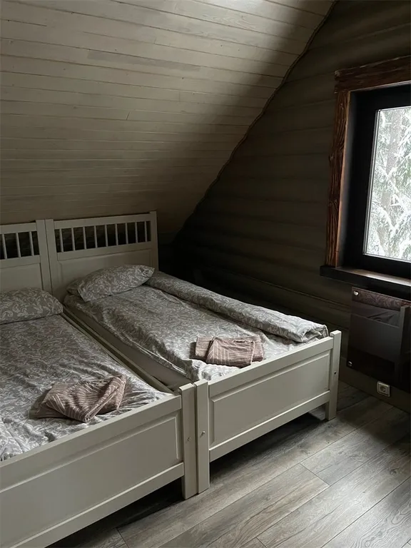 - малая спальня с двумя односпальными кроватями и видом на лесной пруд.
