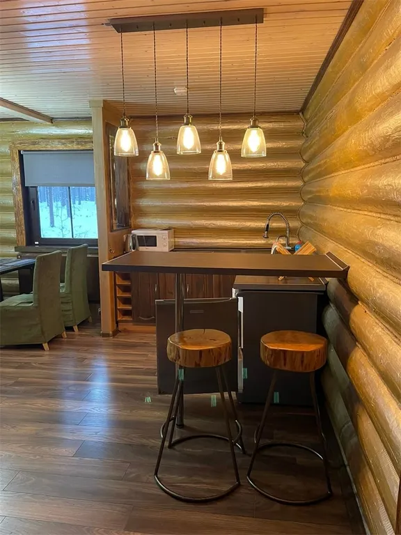 Собственная мангальная зона на лесному пруду с ночной подсветкой.
