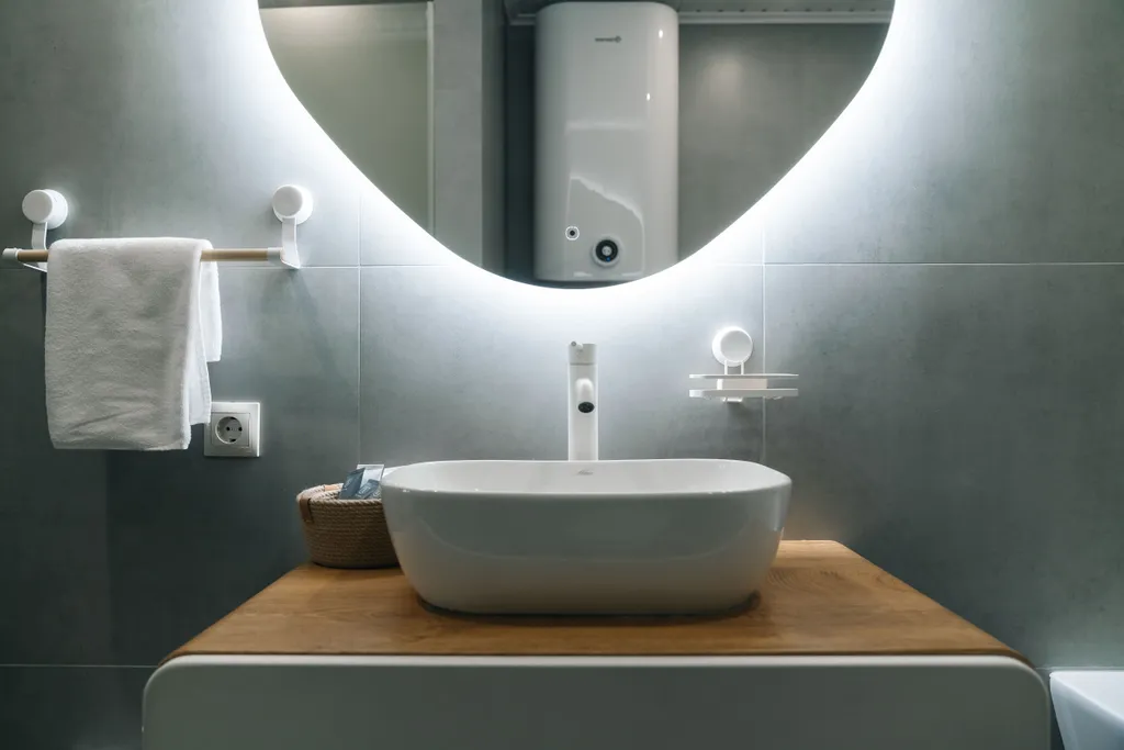 Зеркало, фен, теплый пол