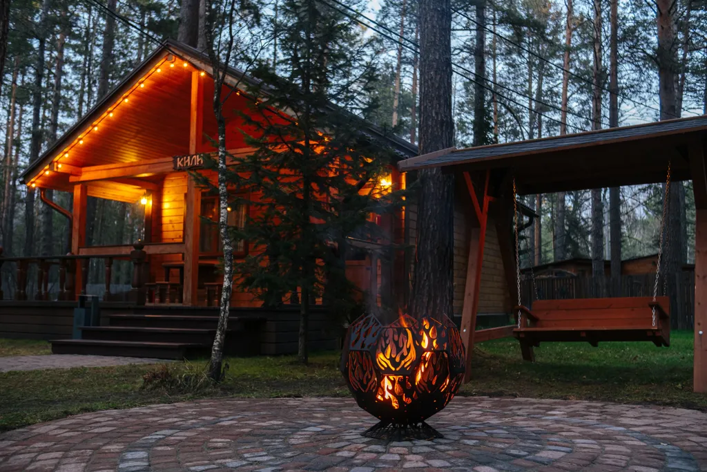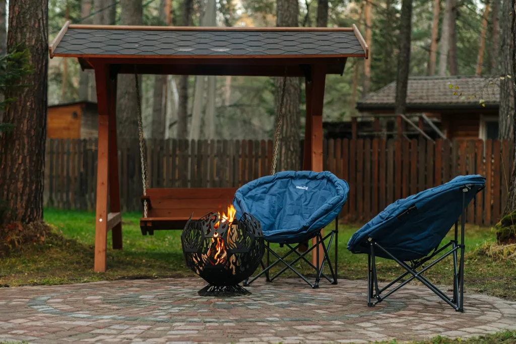 Мангал, приветственная связка дров, решетка, шампуры, качель-скамья