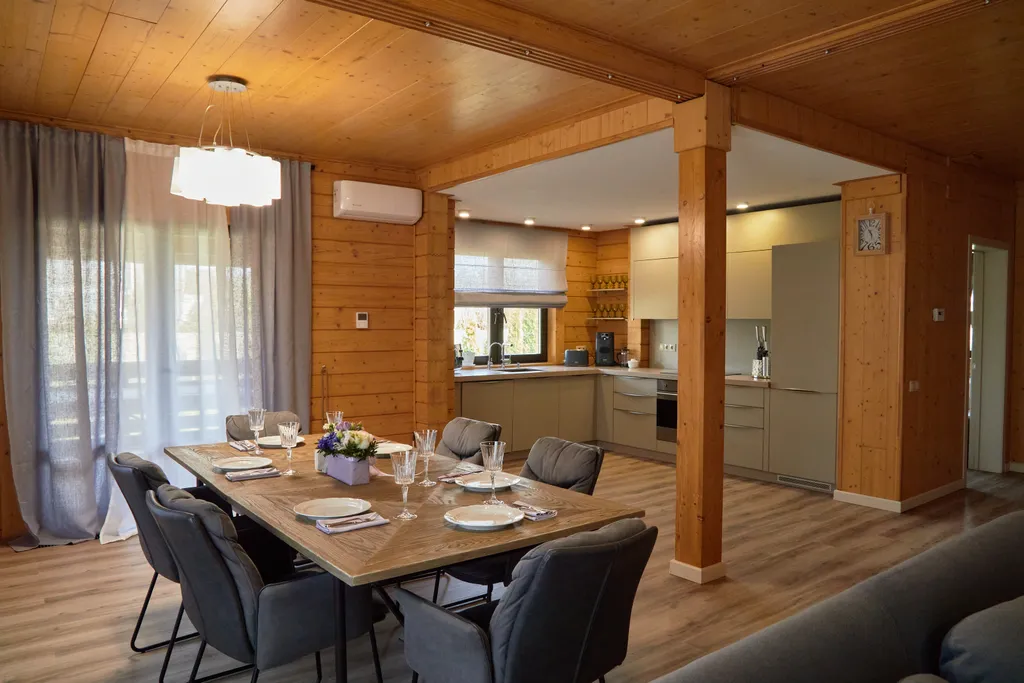 Для удобства гостей, на территории есть отель, банный комплекс, ресторан, охраняемая парковка, детская площадка, прокат велосипедов.