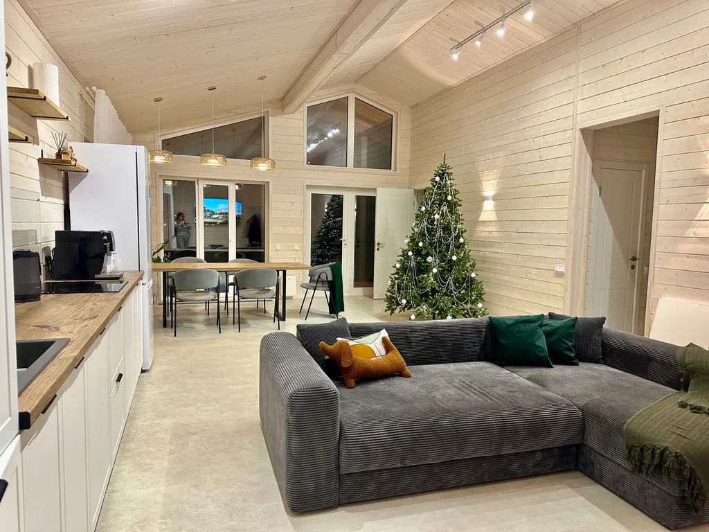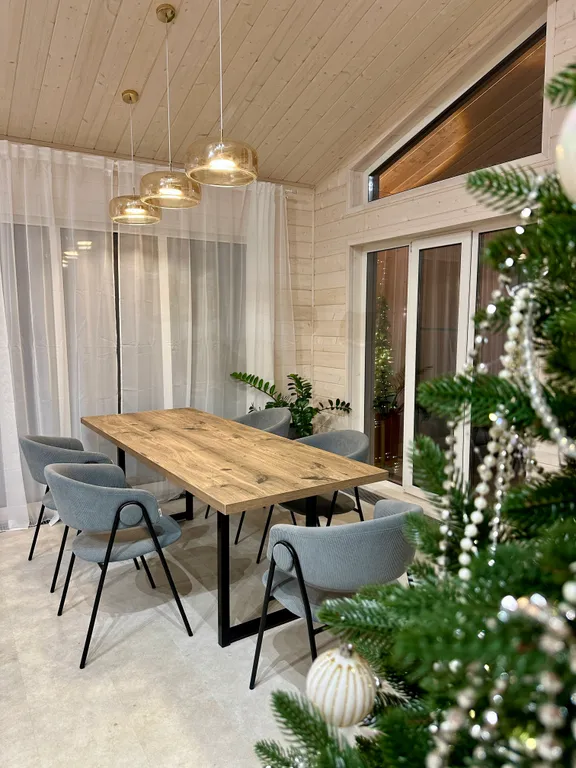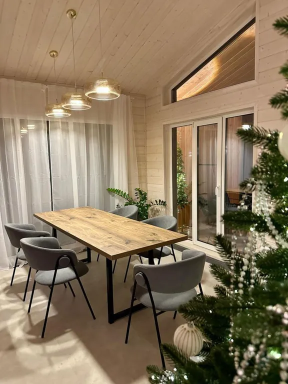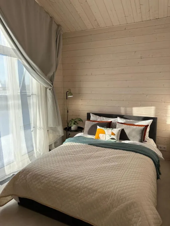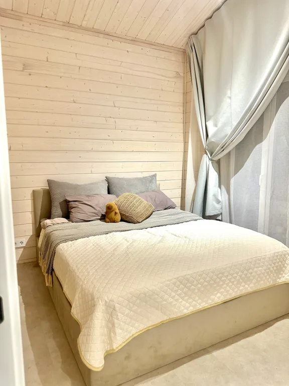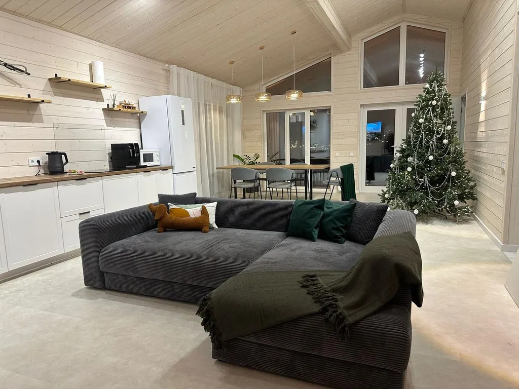 Просторный дом площадью 120 кв.м. идеально подходит для семейного отдыха, вмещая 6-8 взрослых и 4 детей на дополнительных местах (раскладушки предоставляем). Для малышей до 7 лет проживание на спальных местах взрослых – бесплатно!