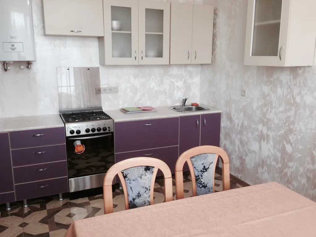 В спальне № 1-две полутороспальные кровати, которые можно сдвинуть или раздвинуть по вашему желанию, раскладной диван для ребенка, шифоньер, стулья. В спальне № 2-большой раскладной диван-кровать, мини-стенка. В гостиной (спальня №-3) - стенка, большой раскладной диван, раскладной диван для ребенка, журнальный столик. Кухня-кухонный гарнитур, два стола, диван, стулья. Вся мебель необходимая для комфортного проживания до 8 человек.