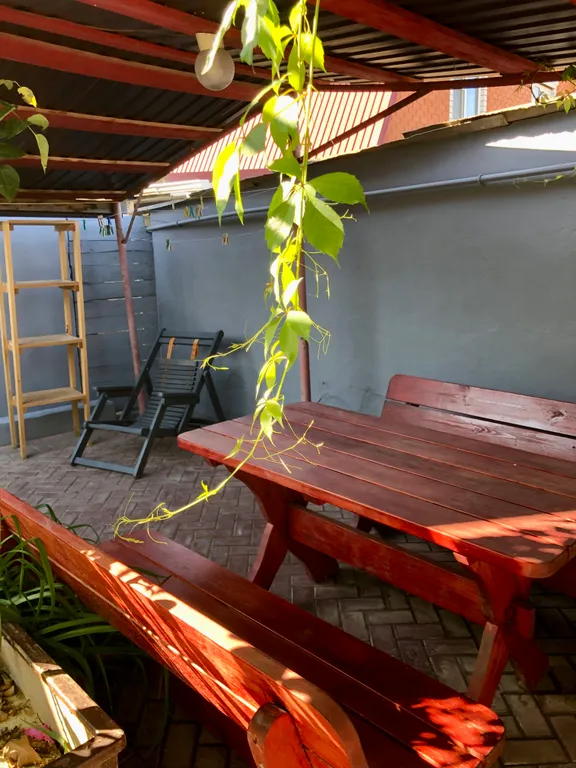 - Отдельный зелёный дворик с мангалом и беседкой (у вас не будет соседей, будете сами себе!)