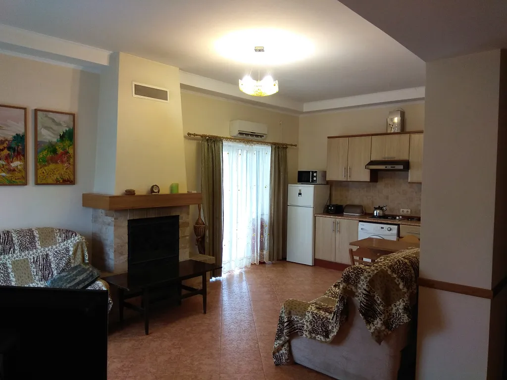 Зал -студия, визуально разделенная на две половины (гостиная и кухня-столовая), занимает основную часть нашего дома. В зоне гостиной вы найдете телевизор (подключено кабельное телевидение), удобный диван, кресло, камин. На кухне вы найдете всю необходимую посуду, газовую плиту, микроволновую печь и большой холодильник. В зале-студии установлен кондиционер, но благодаря отличной теплоизоляции в нашем доме прохладно практически все лето, и гостям редко требуется кондиционер.