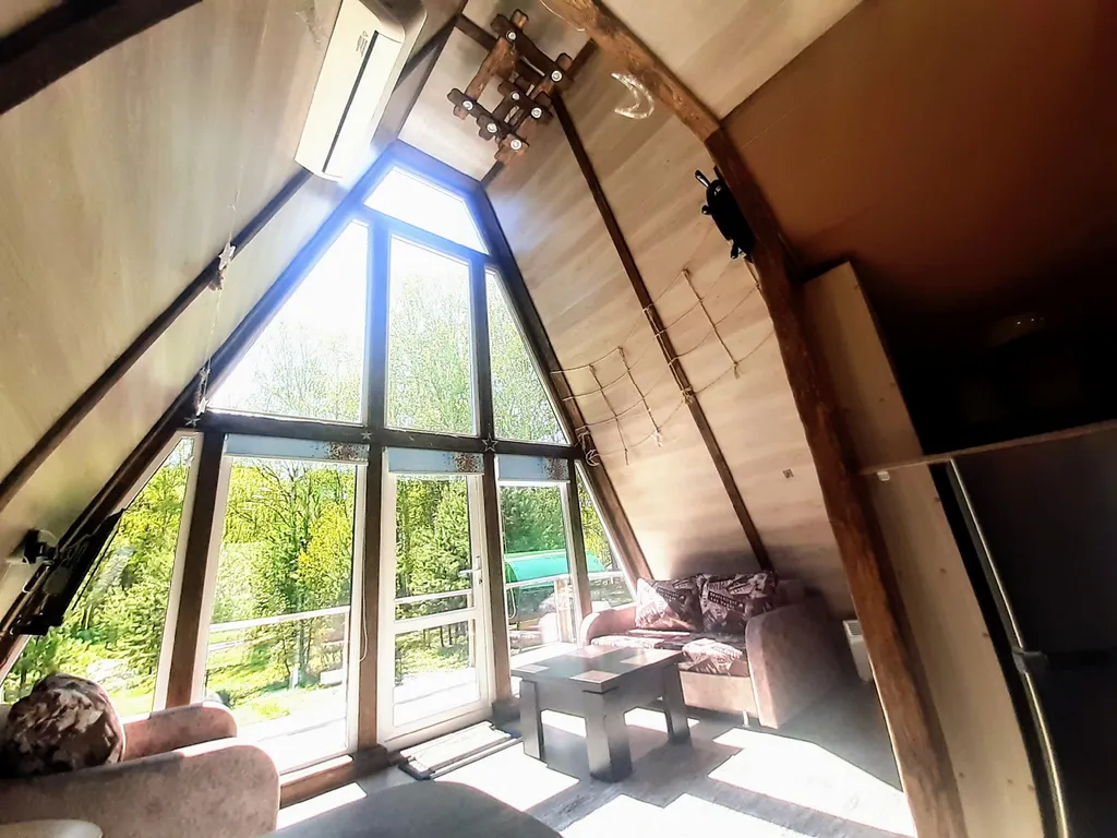 А также двухкомнатные дома с панорамным окном и крытой террасой. Все дома оборудованы туалетом, душем, кухней, мангальной зоной перед домом и всем необходимым для комфортного отдыха гостей.