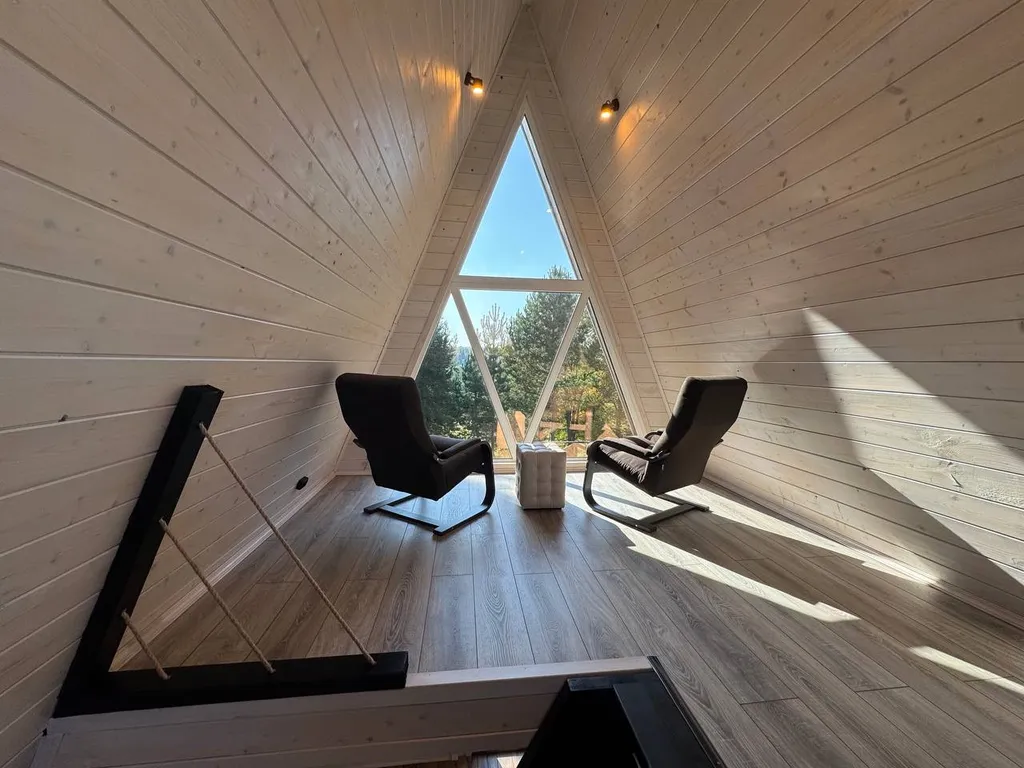 - Уютные коттеджи и дома в стиле афрейм, оборудованные всем необходимым для круглогодичного проживания.
