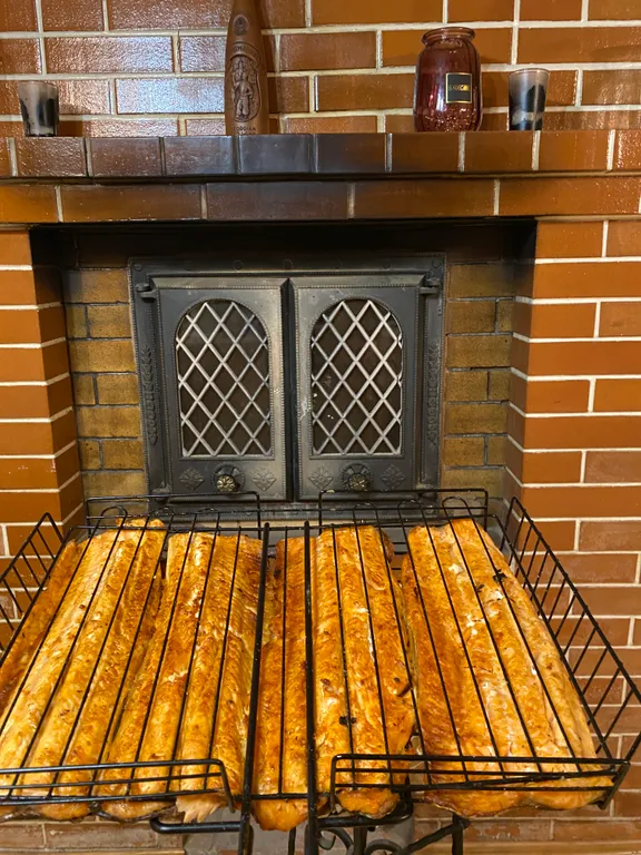 Кухня: камин, ТВ, посудомойка, СВЧ, холодильник нового поколения, духовой шкаф и вся необходимая посуда