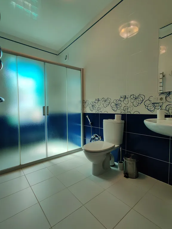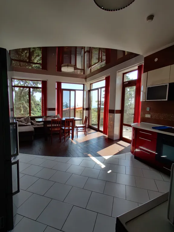 В доме два этажа и 6 комнат, в каждой комнате свой санузел и кондиционер, большой красивый двор и сногсшибательные виды на море и горы. На втором этаже есть открытая терраса. Есть оборудованная кухня, стиральная машина. Здесь могут комфортно разместиться 3-4 семьи.