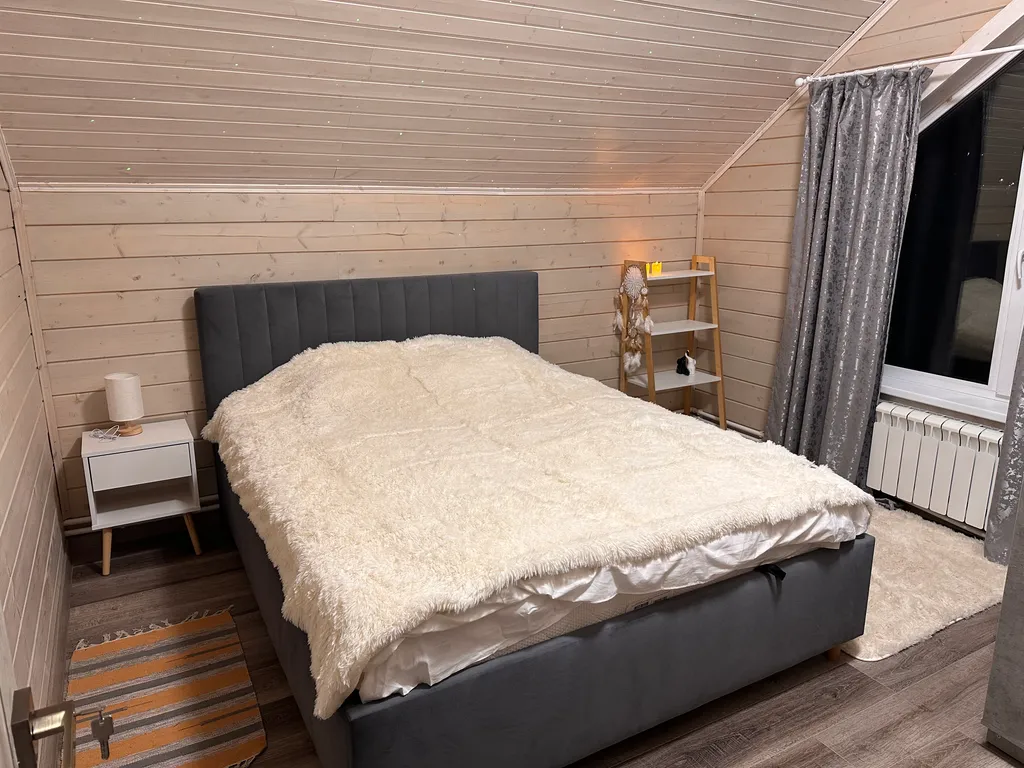 На 1 этаже расположена кухня-гостиная, туалет, совмещенный с душем (бойлер на 60л) и 1 изолированная спальня с раскладывающимся диваном на 2 спальных места.
