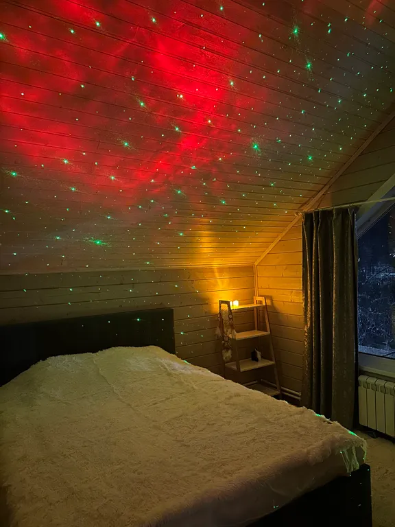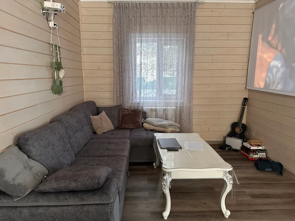 В гостиной установлен проектор во всю стену, установлена программа lazy media, которая позволяет смотреть любые фильмы и сериалы. Настольные игры, гитара.