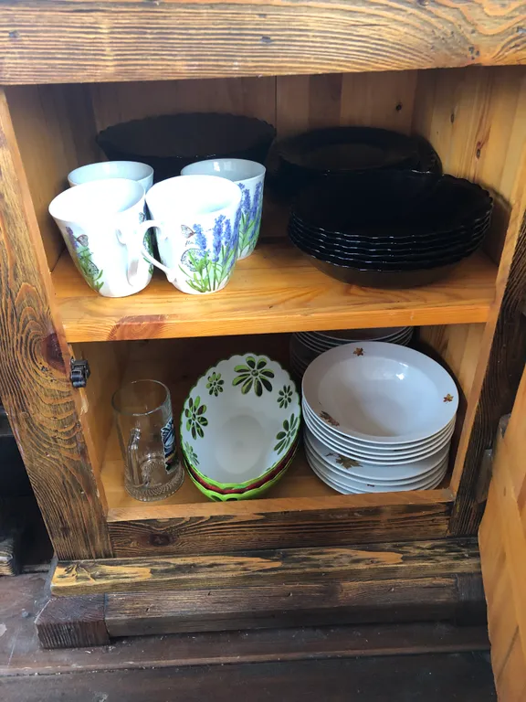 На территории для вас есть общая кухня с холодильником, СВЧ, газовой плитой, различной кухонной утварью и столовыми принадлежностями, для мытья посуды есть раковина и бак для воды.