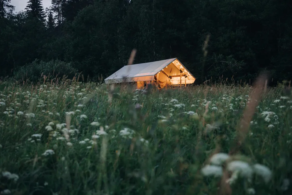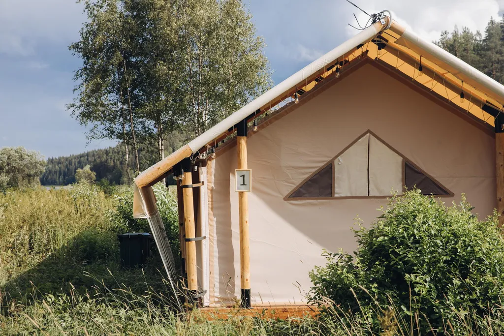 стильный теплый уютный шатёр с крытой террасой, рассчитанный на комфортное проживание 2-3 взрослых или 2 взрослых и 1-2 детей.