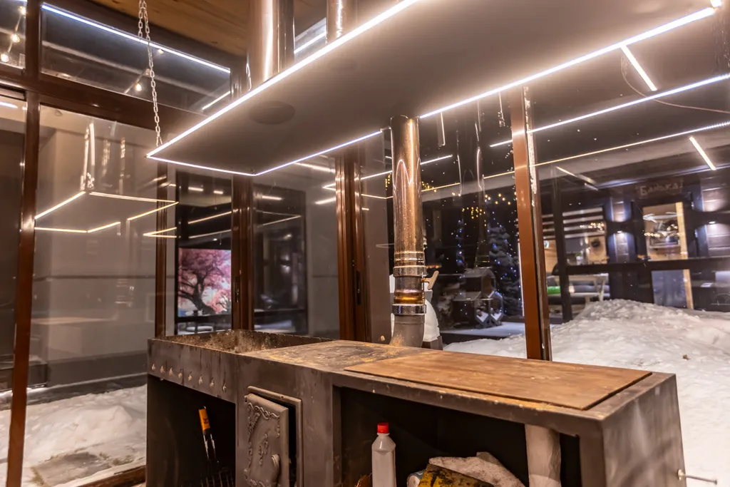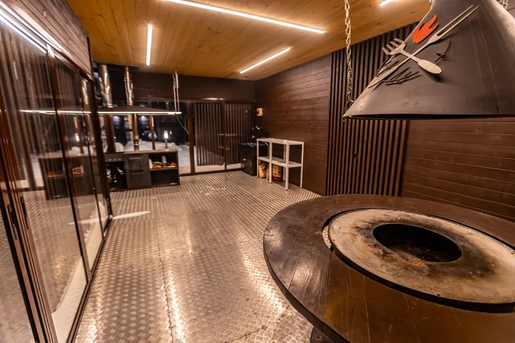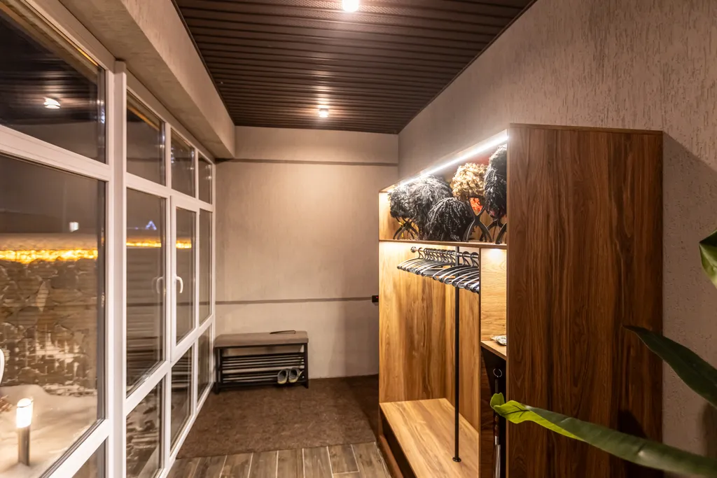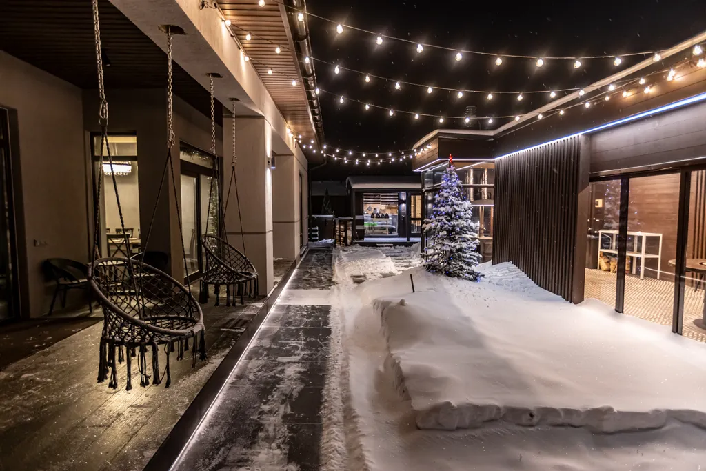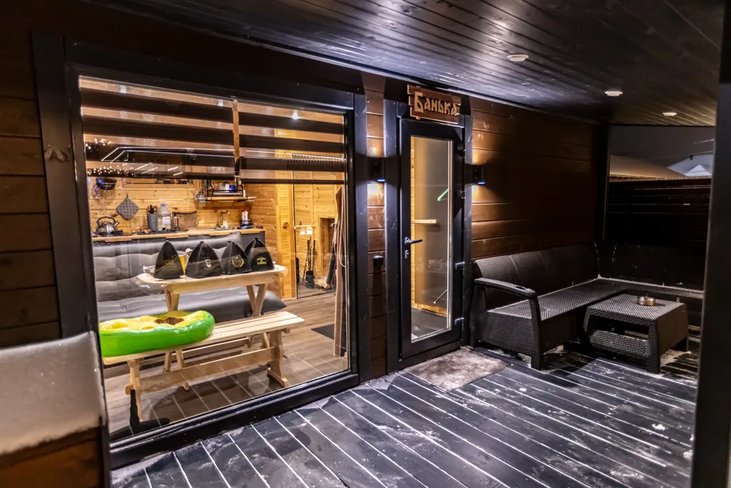 - горячий чан с аэромассажем и светотерапией под открытым небом