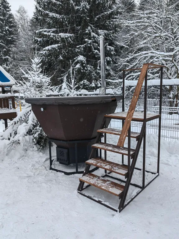Банный чан под открытым небом. Представьте: тёплая вода, звёздное небо, ароматерапия и тишина леса. Это не сон — это ваш отдых!