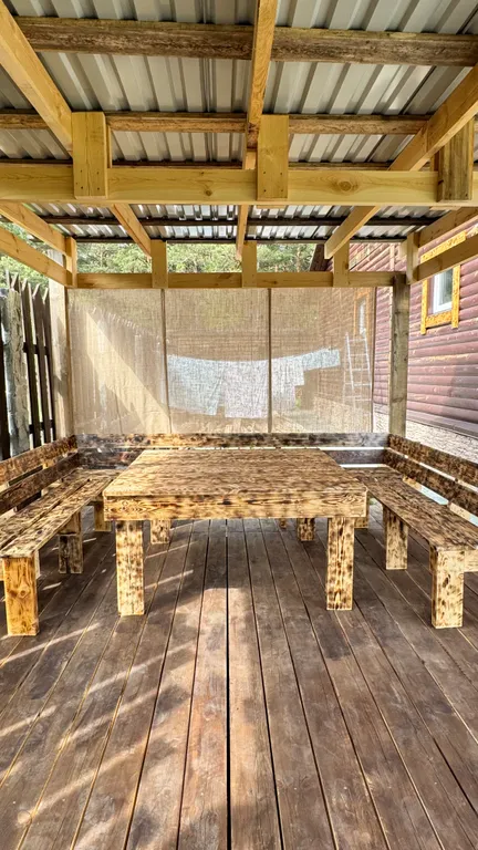 У дома есть свой балкон с диванной зоной и столиком, с которой вы можете созерцать величественную природу горного алтая, встречать рассветы, провожать солнечные лучи, считать звёзды и загадывать желания.