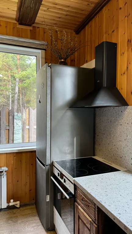 В доме находится полноценная кухня с духовым шкафом, микроволновой печью, холодильником и стиральной машиной, утюг. Фен. Стульчик для кормления ребенка.