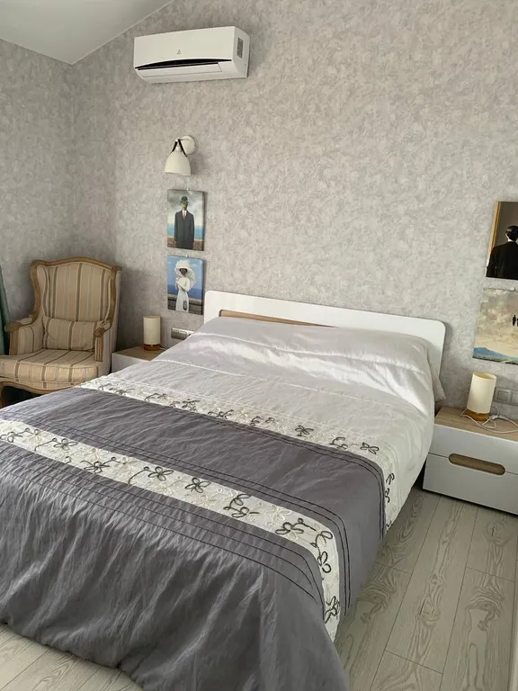 На одном этаже: просторная гостиная с раскладным диваном. Большой балкон с мебелью из ротанга и электро грилем.