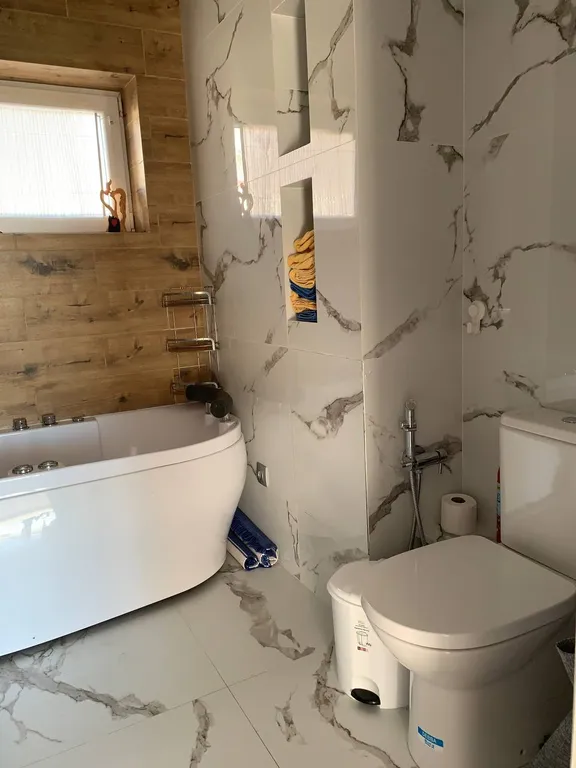 Есть вся необходимая бытовая техника - холодильник, плита, духовой шкаф, посудомойка, стиральная машинка, телевизоры, фены, чайник, утюг. Для комфортного отдыха гостям так же предоставляются белоснежное постельное белье и полотенца