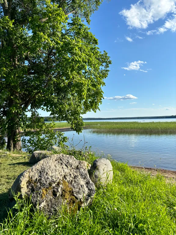 Чистейшая теплая озерная вода (вода теплее, чем в вуоксе), прекрасная рыбалка.