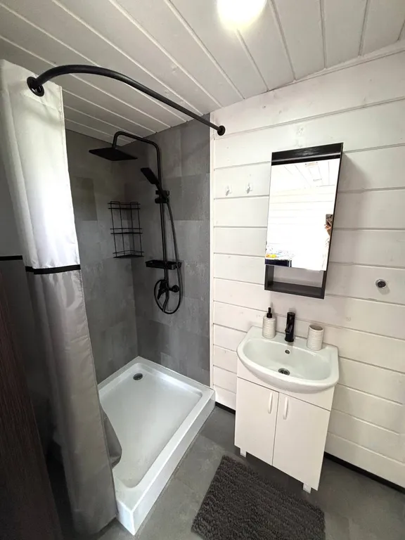 Современный домик 26 метров (с террасой) и видом на сосновый лес включает: