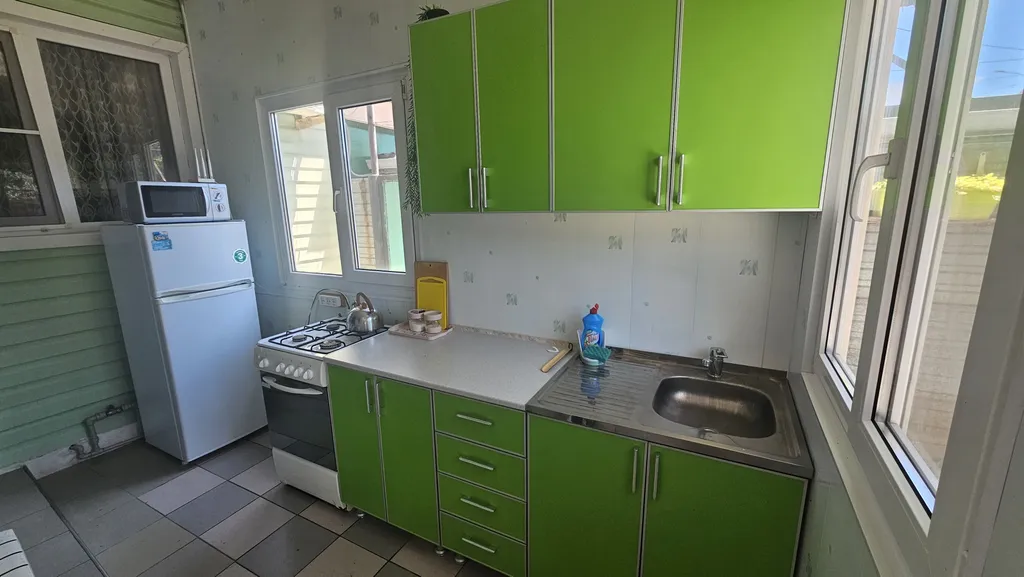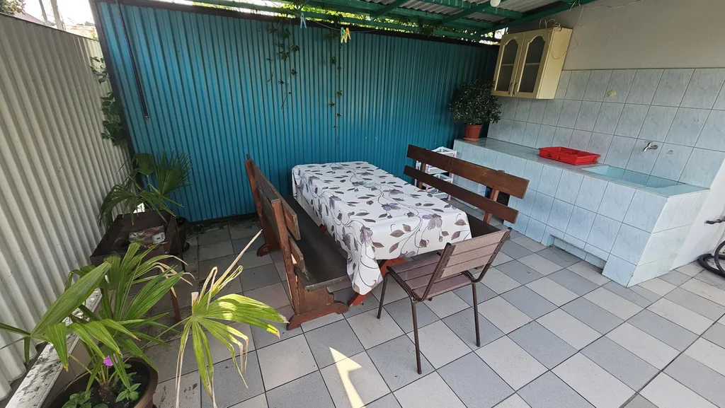 Комнаты оборудованы: (wi-fi интернет, кондиционер (сплит-система), холодильник, набор необходимой мебели, душ и сан/узел в доме. Телевизор со спутниковым тв в большой спальне. Во дворе есть беседка, навес с обеденным столом.