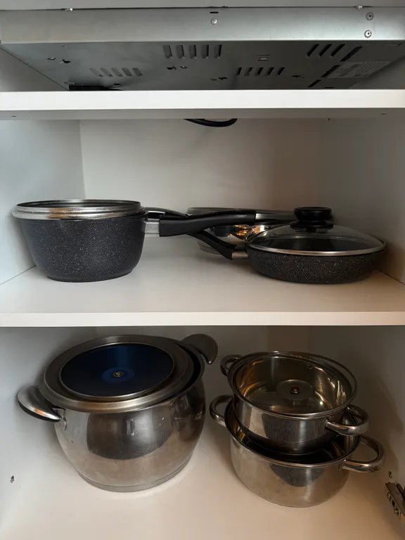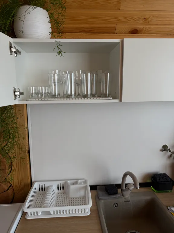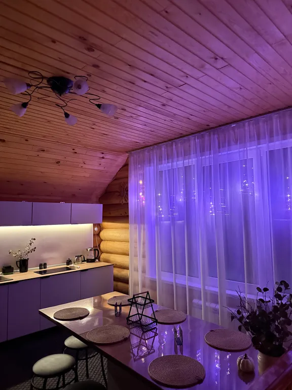 - Просторная кухня с большим столом и раскладывающимся двухместным диваном (холодильник, электрическая варочная плита, микроволновая печь, чайник, набор посуды, кулер с водой)