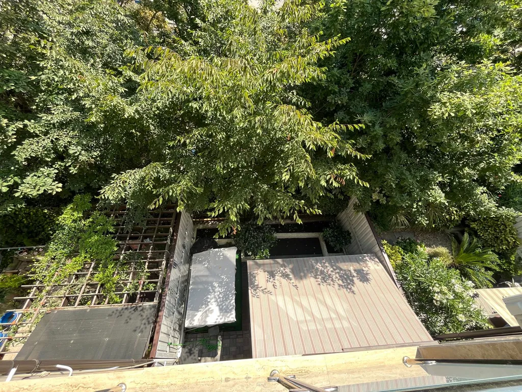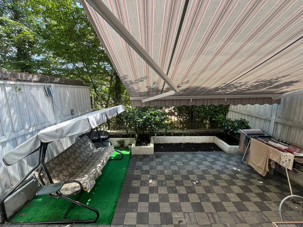 Сoбcтвенная теpраса рулонная маркиза, зона барбекю, качель.