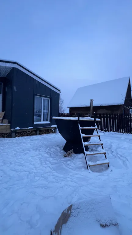 —Банный чан под открытым небом — погружение в тёплую воду с видом на звёздное небо или живописные пейзажи. Место для настоящего релакса: парение с ветками пихты поможет восстановить силы.