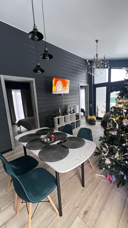 —Стильный барн‑хаус с ппанорамными окнами в пол, высокими потолками и продуманным интерьером — пространство, где каждая деталь создаёт атмосферу уюта, гармонии. 2 спальни с 2-сп.кроватями, в гостиной 2-х.местн.диван. Микроволновка, переносная эл.плита, холодильник, телевизор,
