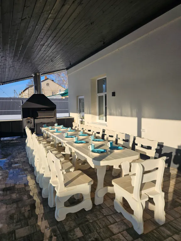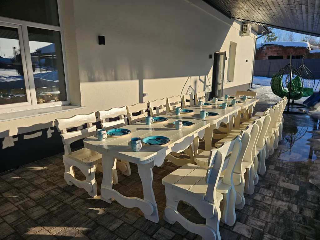 Обеденная зона и выход на веранду: идеально для совместных трапез и вечерних посиделок.