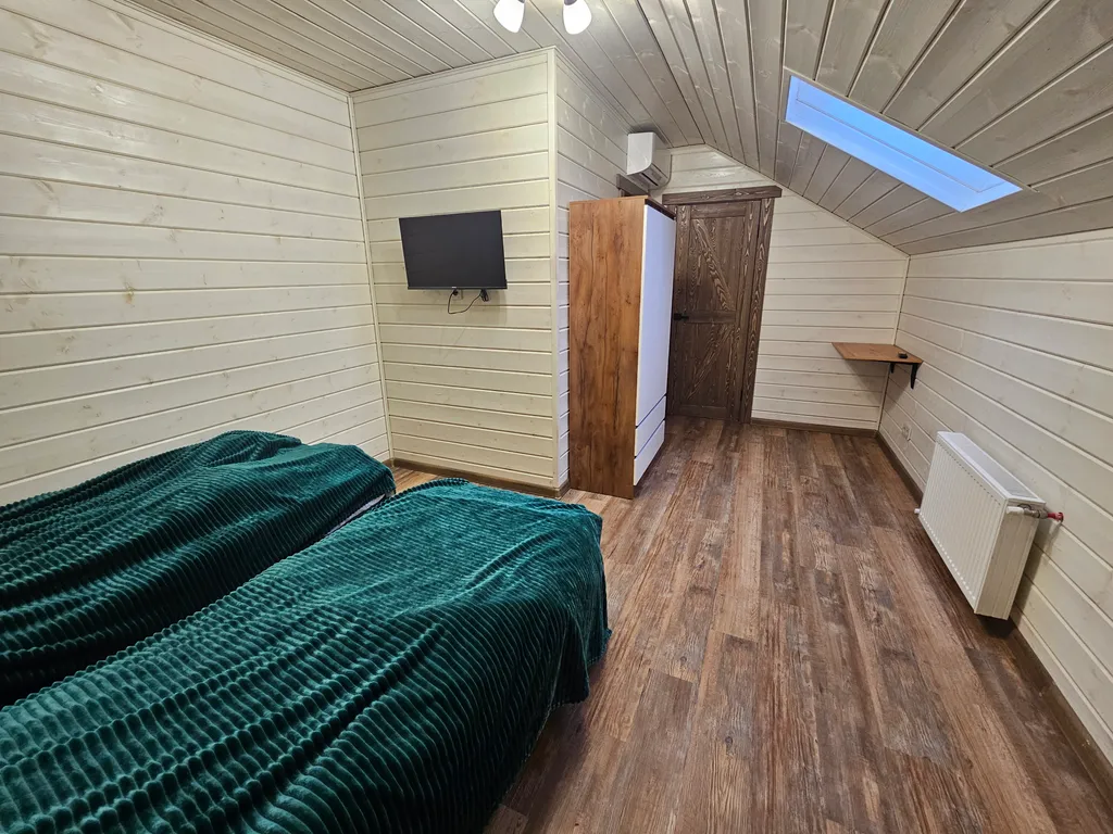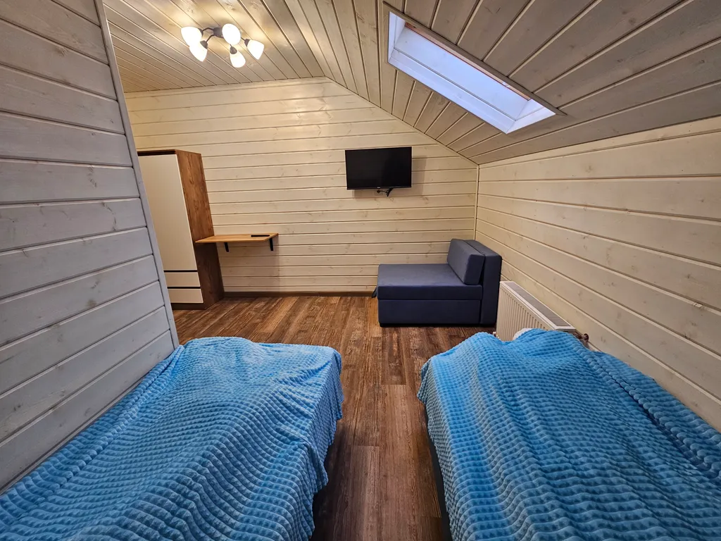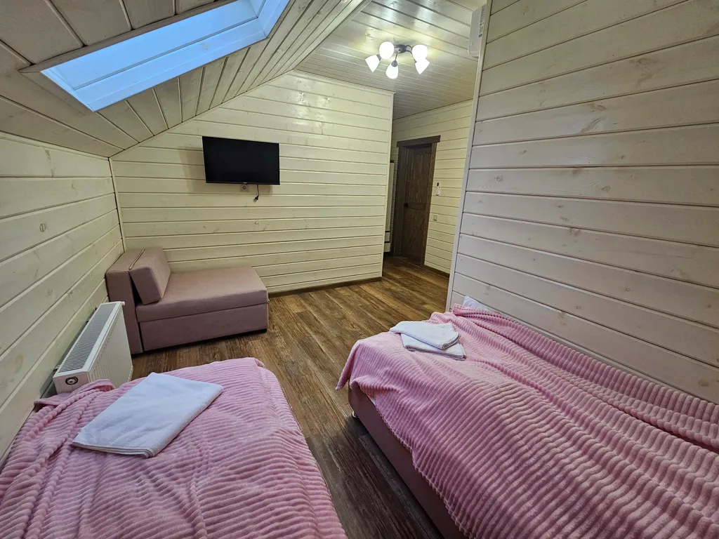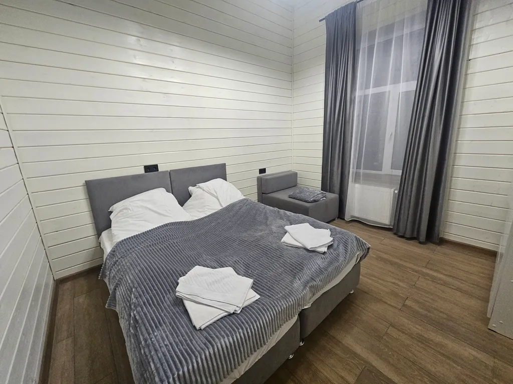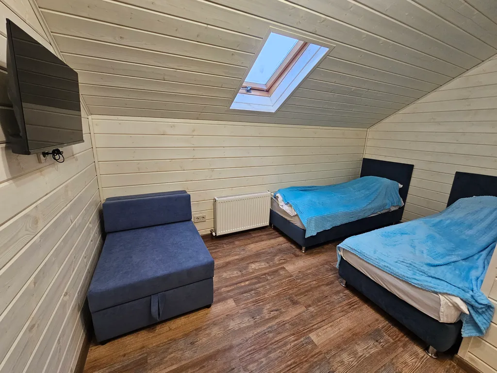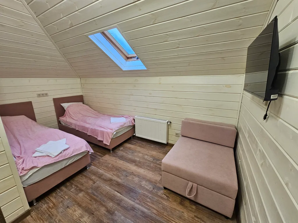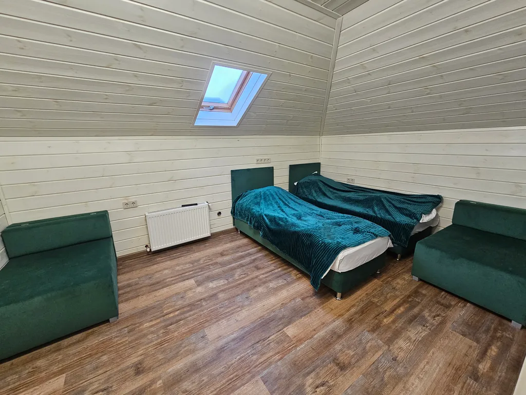 10 просторных комнат: в каждой — 3 спальных места (две односпальные кровати, которые легко превращаются в двуспальную, плюс кресло‑кровать).
