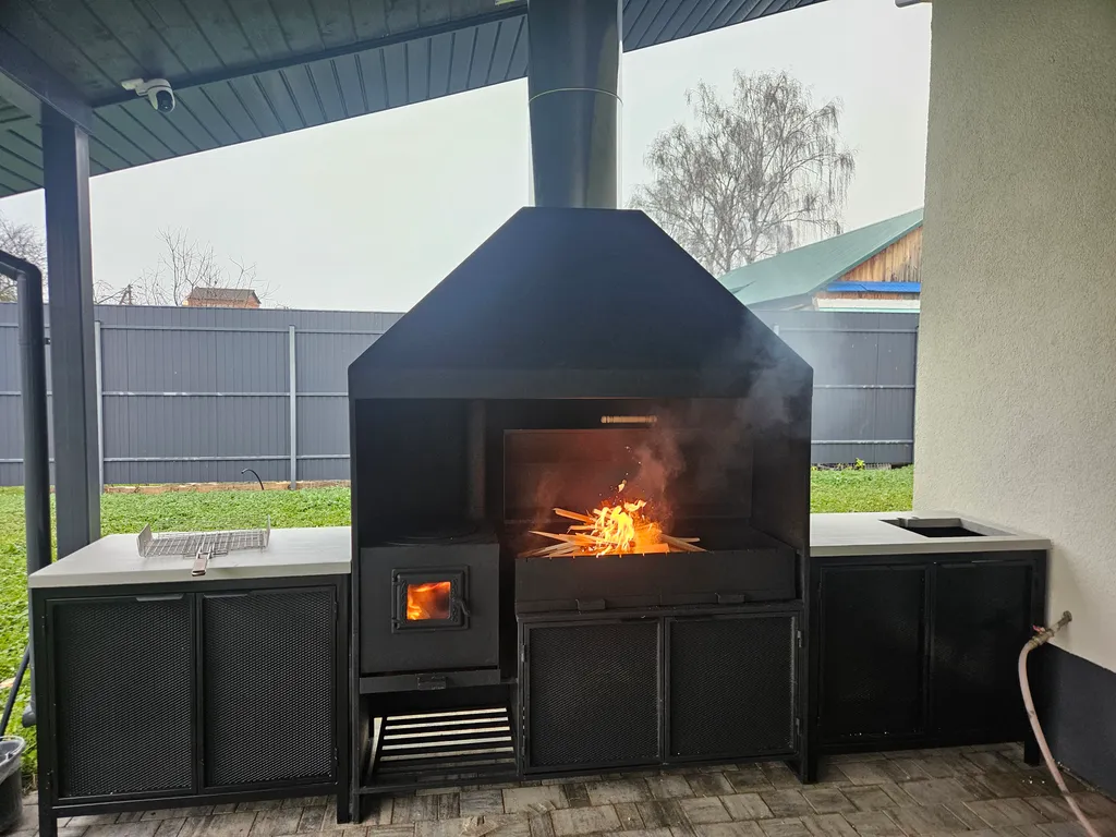 Веранда с мангальным комплексом: мангал и печь под казан — готовьте любимые блюда на открытом воздухе!
