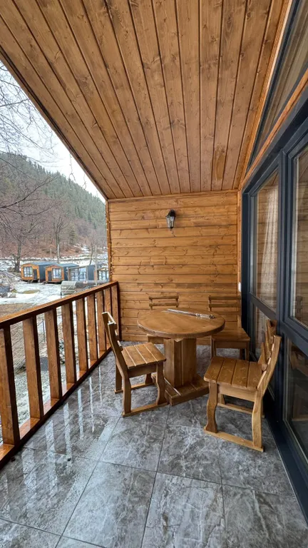 общая площадь с террасой — 50 м² — достаточно места для комфортного отдыха и приятных вечеров на свежем горном воздухе.