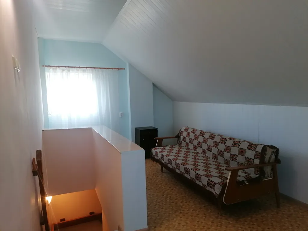 Четыре полутороспальные кровати, диван-кровать, тахта, 2 двухспальные кровати, 2 телевизора, оборудованная кухня (2), душ (2) и туалетная комната (2) в доме. При необходимости можно поставить детскую кроватку.