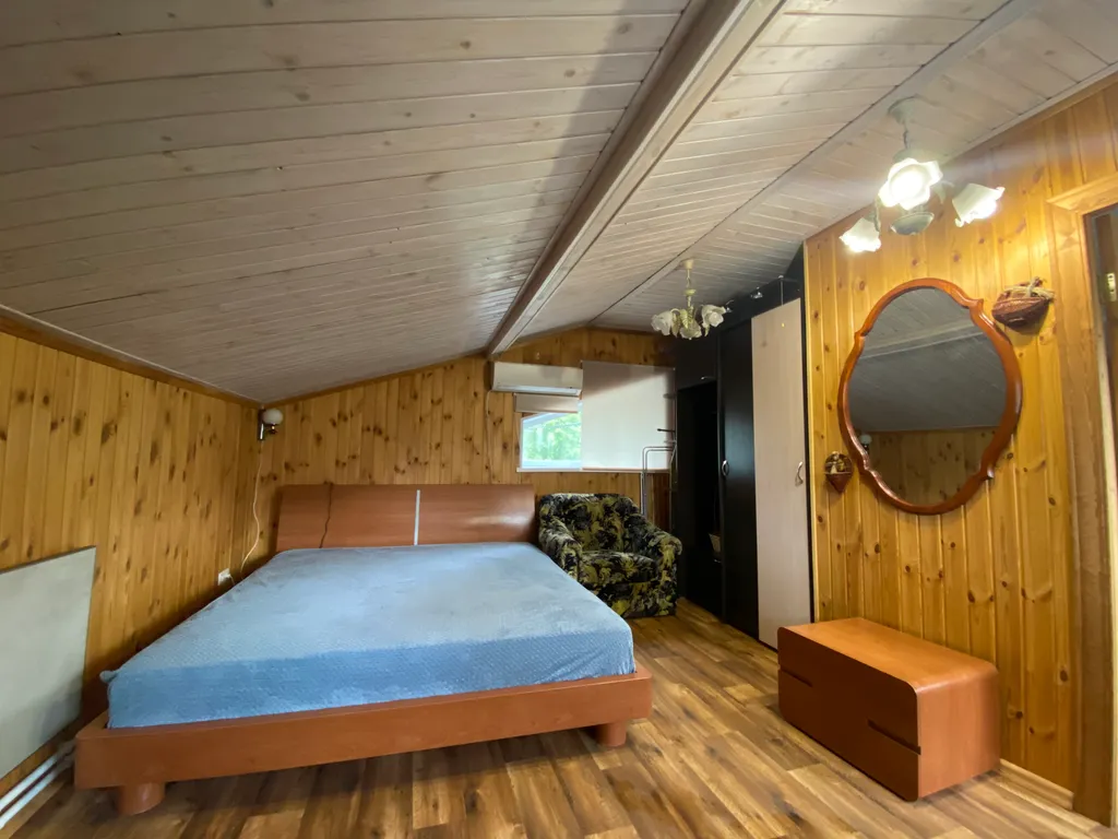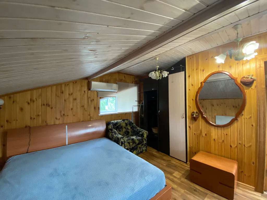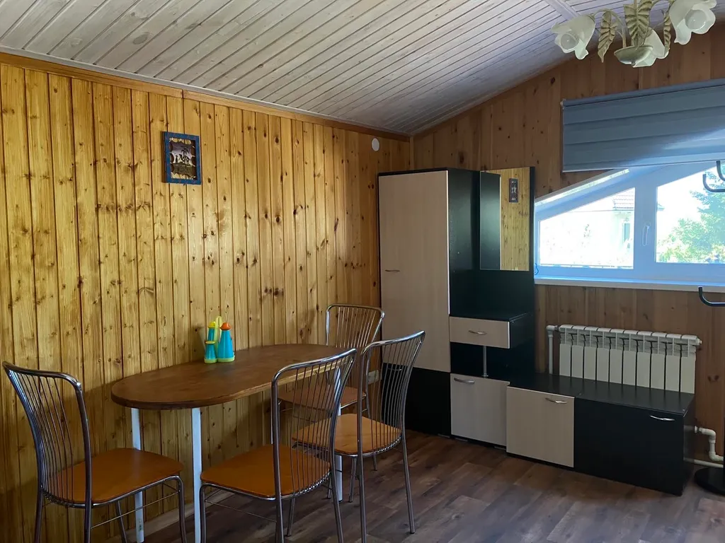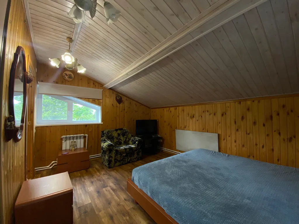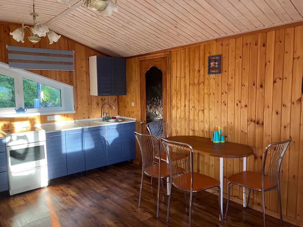 Кровать двуспальная 180 на 200, два кресла, можем предоставить раскладушку. Кухонный уголок. Постельное бельё, махровый халат банный. Окна пластиковые с москитными сетками. Предоставляется возможность пользоваться мангалом и садовой мебелью. Участок земли в аренду не входит. Предоставляется одно парковочное место на площадке перед домом. Дом рассчитан на одну-две персоны. Более двух жильцов не заселяем. Можно с животными (держать на участке).