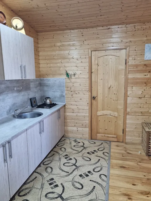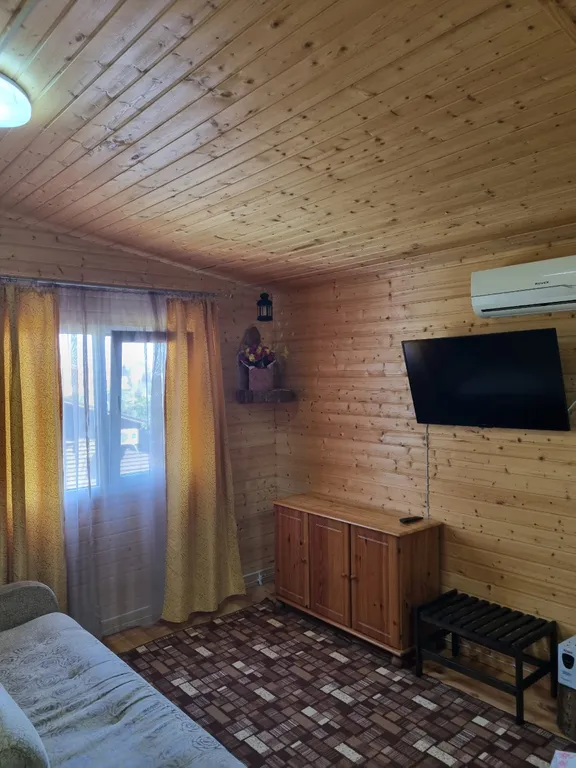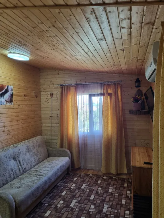 В доме находится кухня с необходимым набором посуды, газ. панель, в спальне двуспальная кровать, комод для вещей, столик, сейф, санузел совмещён, ТВ, сплит система в общей комнате, диван, комод, стол.