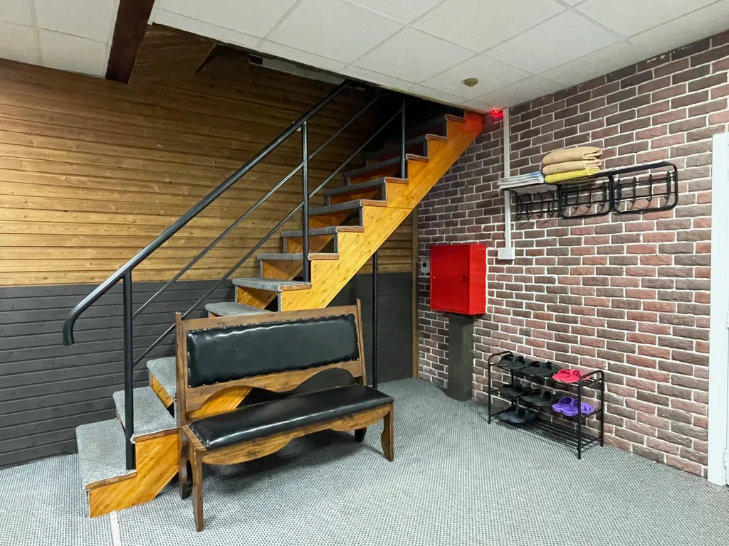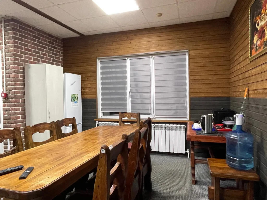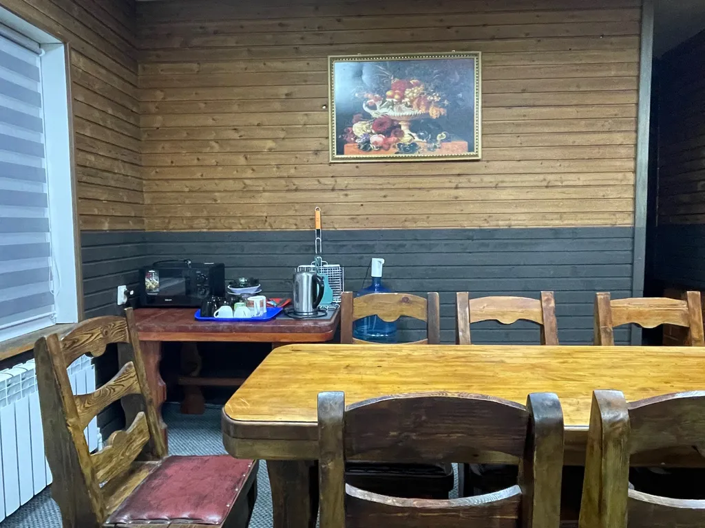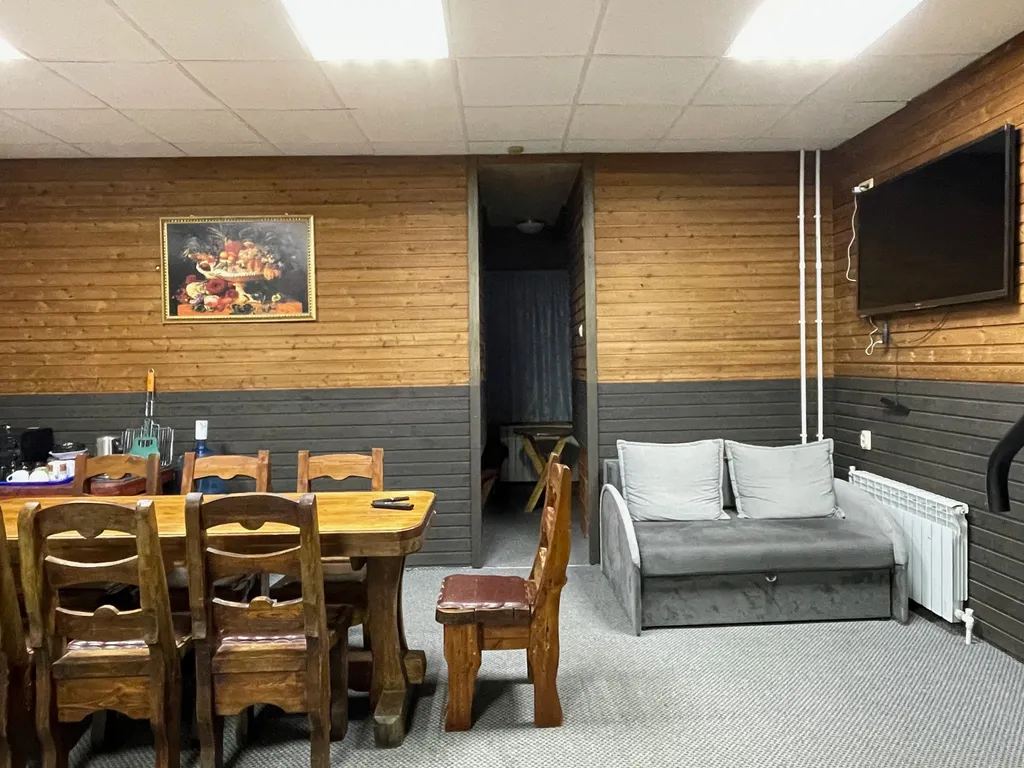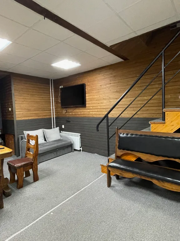 На первом этаже находится: сауна, беседка, караоке, телевизор, сан узел, а так же кухня (холодильник, чайник, микроволновка, посуда)