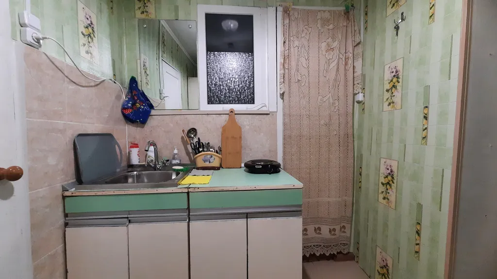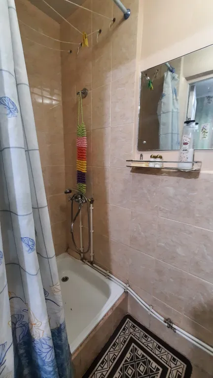 В комнате: 2 кровати, шкаф для одежды, тумба, телевизор, кондиционер, масляный радиатор; на кухне: раковина, тумбы для приготовления еды и для посуды, холодильник, стол обеденный, стулья, чайник электрический, микроволновая печь, электроплитка; в душе: душевой поддон и туалет. Вода горячая/холодная круглосуточно. Косметический ремонт (в комнате обои, линолеум; на кухне обои/кафель, пол-плитка; в душе/туалете – кафель). Имеется вся необходимая мебель, посуда, спальные принадлежности, полотенца, утюг, фен, интернет wi-fi; доступно пользование стиральной машиной (автомат) по мере необходимости.