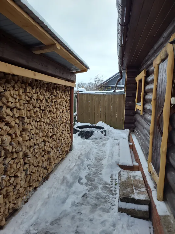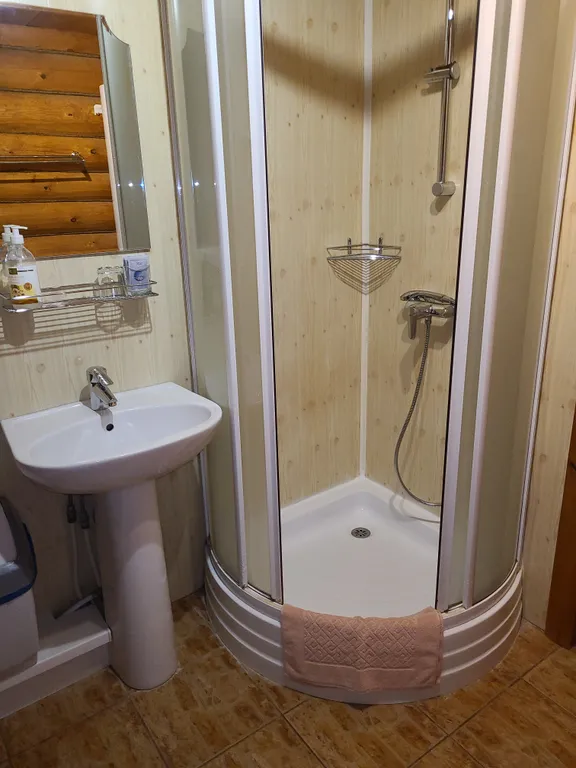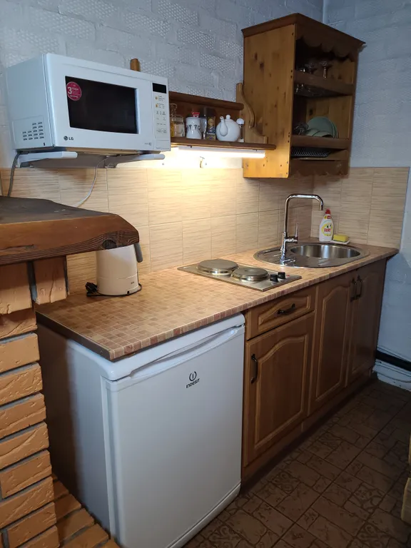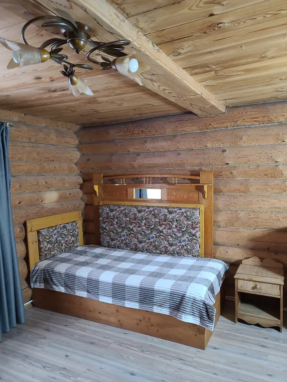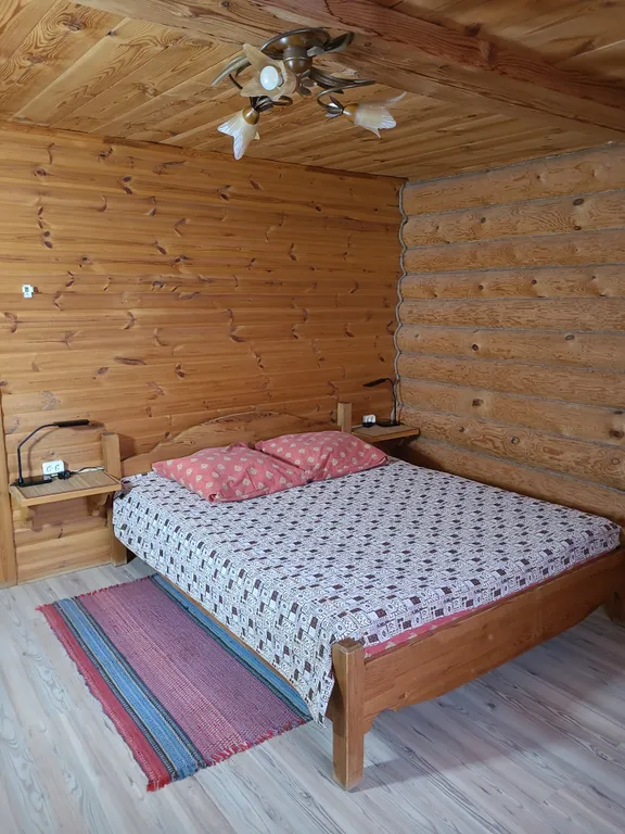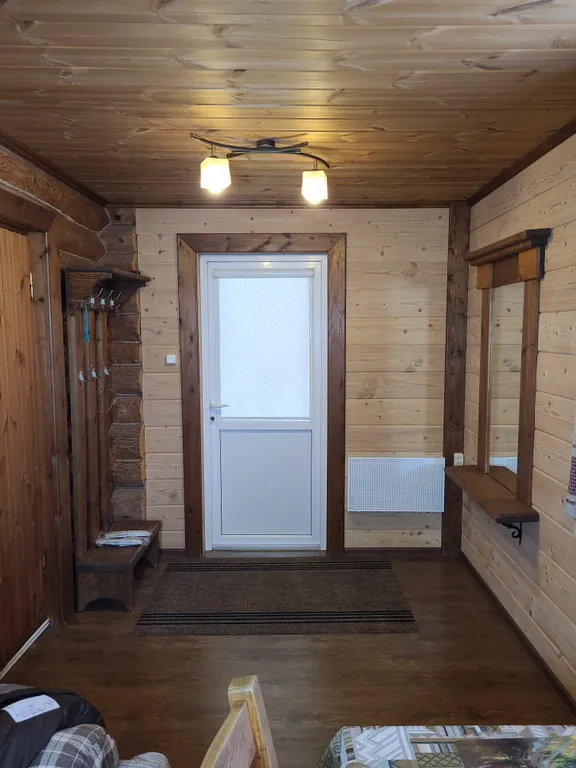 В доме: гостиная, совмещенная с кухней, камин (топится дровами-оплачивается отдельно), спальня и туалетная комната с душевой кабинкой.